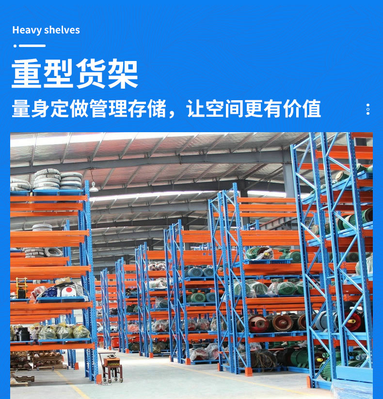 后期使用過程中,重型貨架數量不夠用,還可以增加主副架數量或橫梁層數,組合式重型貨架,組裝方便,如果你要更換倉儲庫房的話,還可以將它進行重新拆裝組合,放至您需要的庫房,比普通的倉儲貨架更為方便!