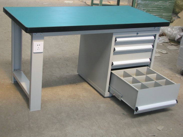 工作臺采用優(yōu)質(zhì)冷扎板精工制作而成,堅固的工作桌框架,牢固平穩(wěn),可使工作桌承重1000kg;多種工作桌面選擇,可配合不同使用的要求;工具吊柜(箱),側(cè)柜(箱)燈架,調(diào)節(jié)腳杯,,外形美觀;層板,抽屜質(zhì)量上乘,承重大,抽屜內(nèi)可根據(jù)需要任意分隔;節(jié)約空間,適用性強。