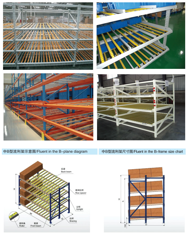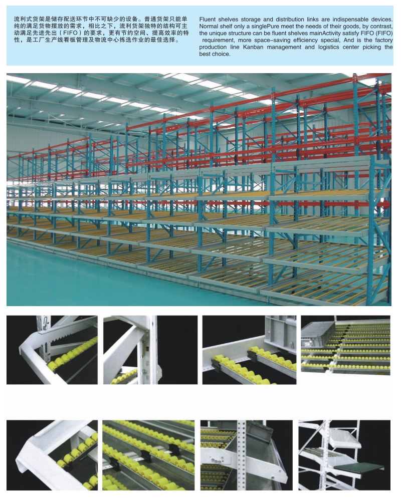 流利式貨架廣泛應(yīng)用于制造業(yè),商業(yè),配送中心,裝配車間以及出貨頻率較高的倉庫流利式貨架:采用輥輪鋁合金,鈑金等流利條,利用臺架自重實(shí)現(xiàn)先進(jìn)先出,存儲方便,適用于裝配線兩側(cè)配送中心等場所。