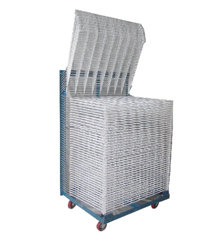 千層架,又叫絲印千層架、乾燥架、千層車、晾曬架、晾紙架、網(wǎng)架、層架臺車。適用于印刷、上膠、噴漆、上色,濺鍍後的晾乾置放器材。活動式多層網(wǎng)格設(shè)計,置放空間大,操作方便,節(jié)省車間、庫房面積,并可適用於所放產(chǎn)品的常溫晾乾和進焗爐高溫烘烤。