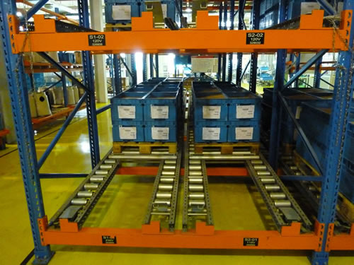 在貨架的組與組之間沒(méi)有作業(yè)通道,從而增加了60%的空間利用率,提高了倉(cāng)儲(chǔ)的容積率;托盤(pán)操作遵循先進(jìn)先出的原則;自動(dòng)儲(chǔ)存回轉(zhuǎn);儲(chǔ)存和揀選兩個(gè)動(dòng)作的分開(kāi)大大提高輸出量,由于是自重力使貨物滑動(dòng),而且沒(méi)有操作通道,所以減少了運(yùn)輸路線和叉車(chē)的數(shù)量。